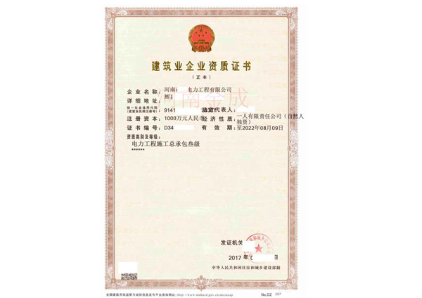 • 建筑業企業資質證書